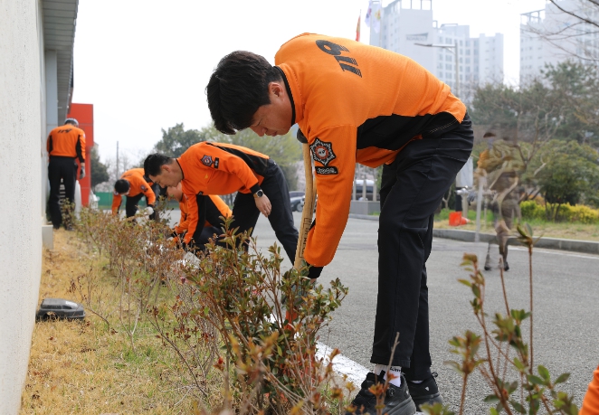 이날 행사에는 소방공무원 60여 명이 참여해 청사 주변에 문그로우 25그루, 철쭉 60그루, 금사철나무 90그루를 식재했으며, 주변 환경 정화를 위한 쓰레기 수거 활동도 함께 진행했다.